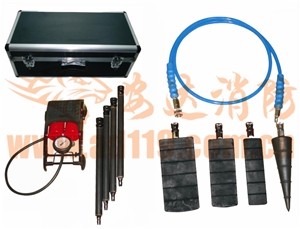 小孔堵漏枪(4种)用于快速封堵背压≦0.1Mpa,泄漏介质温度≦60℃的存储罐、油罐车、液柜车裂缝,不需要拉伸带。操作人员堵漏时将枪头、枪杆、连接气管、脚踏气泵连接在一起,手持枪杆在安全距离外,将楔形或圆锥形密封袋插入于直径15至60毫米的裂缝里面,以及直径30至90毫米的漏孔内,并迅速充气密封裂缝。