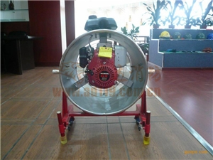 符合Q/XFZB001—2008《YY型正压式排烟机》标准。采用不锈钢导风筒,轮轴式支架和美国百利通公司小型汽油机直接驱动风扇叶轮.结构简单可靠,便于移动,容易调节出风的角度,送风量大,适用于楼层与地下室火灾中排烟及疏散被困人员。