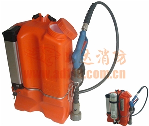 单向流背负式细水雾灭火装置(电动)是高效灭火装置,它是以电池为能源,通过电机驱动水泵产生一定压力的水流,通过对水流压力和流量的控制后,再通过可产生细水雾的专用喷枪喷