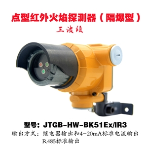点型红外火焰探测器(IR3)含三个红外探测波长的传感器和光学过滤器,探测器对CO2 发射光谱(4.4um)具有最高的灵敏性,另二个传感器对环境光线、热体辐射的干扰进行探测,探测器对探测结果拥有多项信号处理算法,结合对火灾发生时火焰闪烁频率的逻辑综合判断,能够最大程度抑制错误报警以及需要最佳火灾探测性能的室内和室外应用。特殊的火灾信号处理方法与多传感器技术极大的提高了探测器的灵敏度和响应时间,具有抗日光干扰的性能,广泛用于露天环境。探测器能提供有机材料(碳氢化合物)燃烧火焰的早期报警,能够在高/低温,高湿,震动等最苛刻的工业环境下工作,通过了中国CCCF认证和防爆认证。